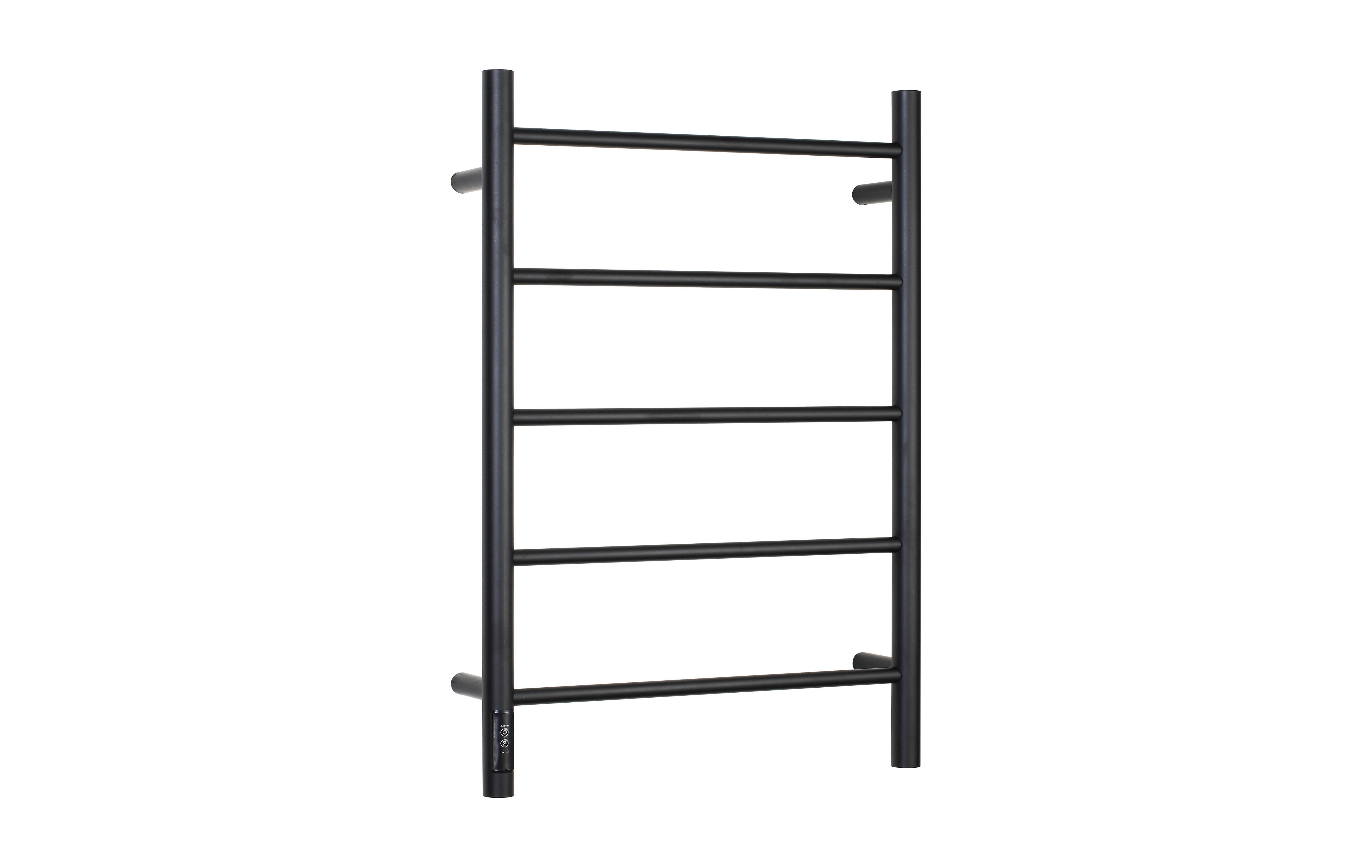 5桿時控開關電熱毛巾架 5 bar time switch heated towel rail 材質Material:SS201/SS304 功率Power:220V/80W 表面Surface:Black Painted 黑色噴塑 尺寸Size:500*110*800mm 包裝Ctn size:520*60*830mm