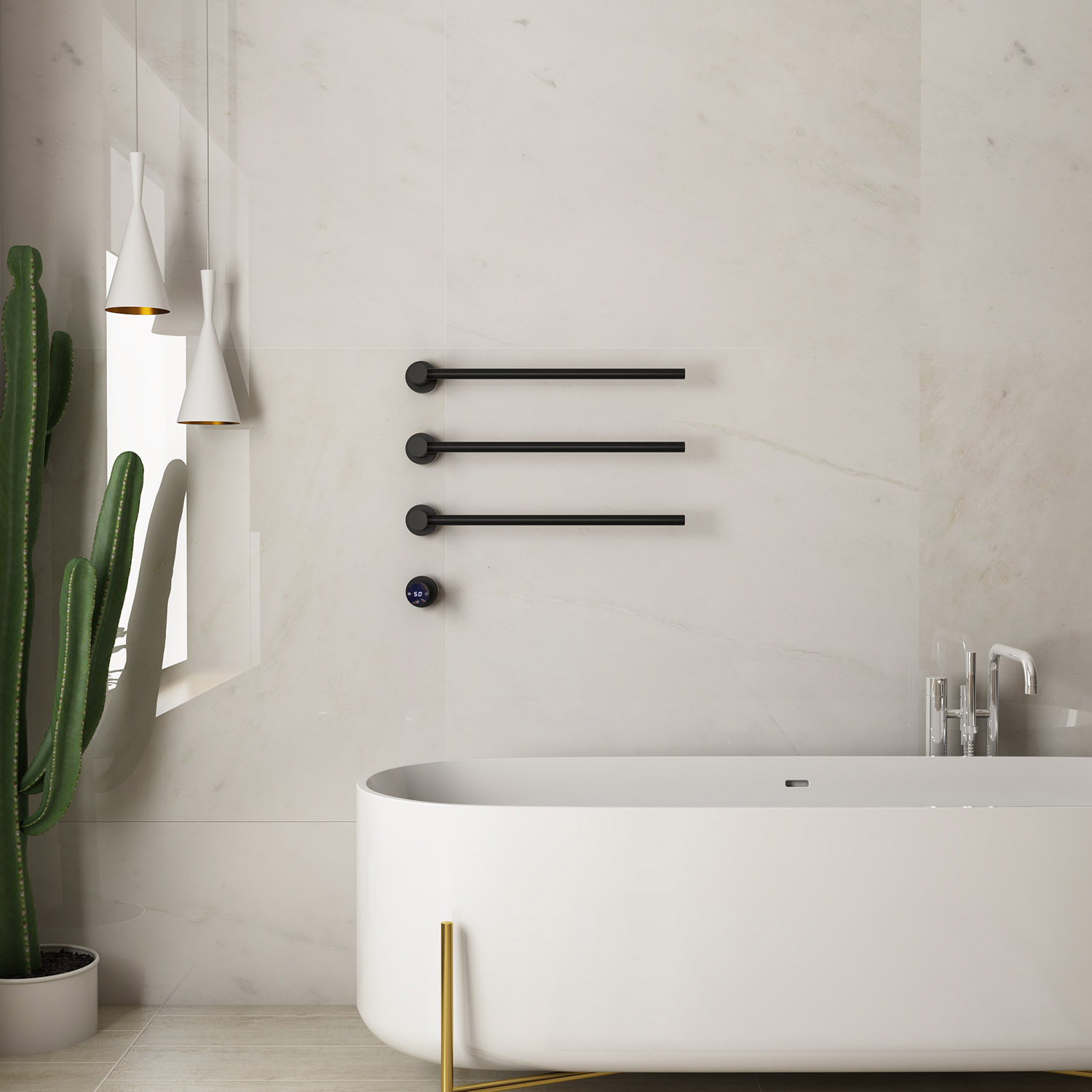 單桿預(yù)埋旋鈕開關(guān)電熱毛巾架Single lever embedded knob switch heated towel rack材質(zhì)Material:SS201/SS304功率Power:220V/60W表面Surface:Black Painted 黑色噴塑單桿尺寸Single Rod Size:500*150mm包裝Ctn size:710*110*410mm